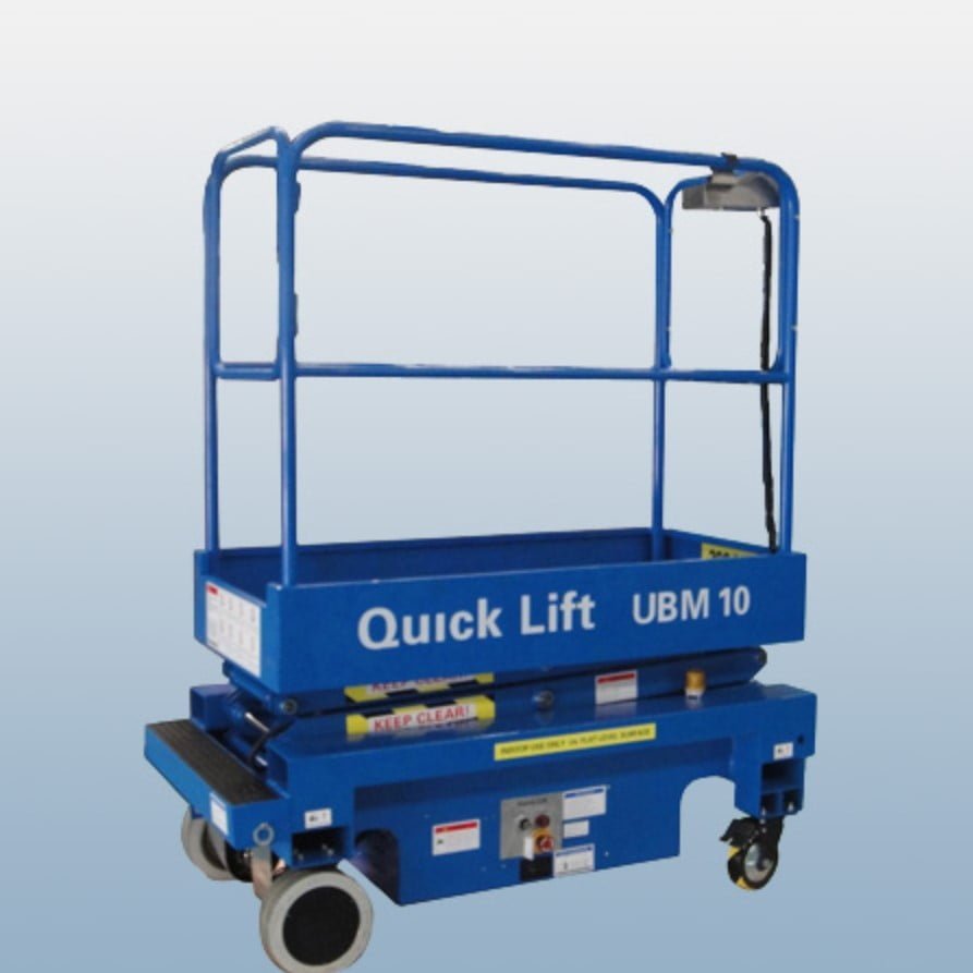 Take the manually propelled UB Quick Lift mini scissors made by the AHI group, for example. Their manually propelled scissor lifts are the smart alternative to ladders and scaffolds. They are designed to be very safe, perform excellently, easy to use, highly reliable and economical to use over a long period.